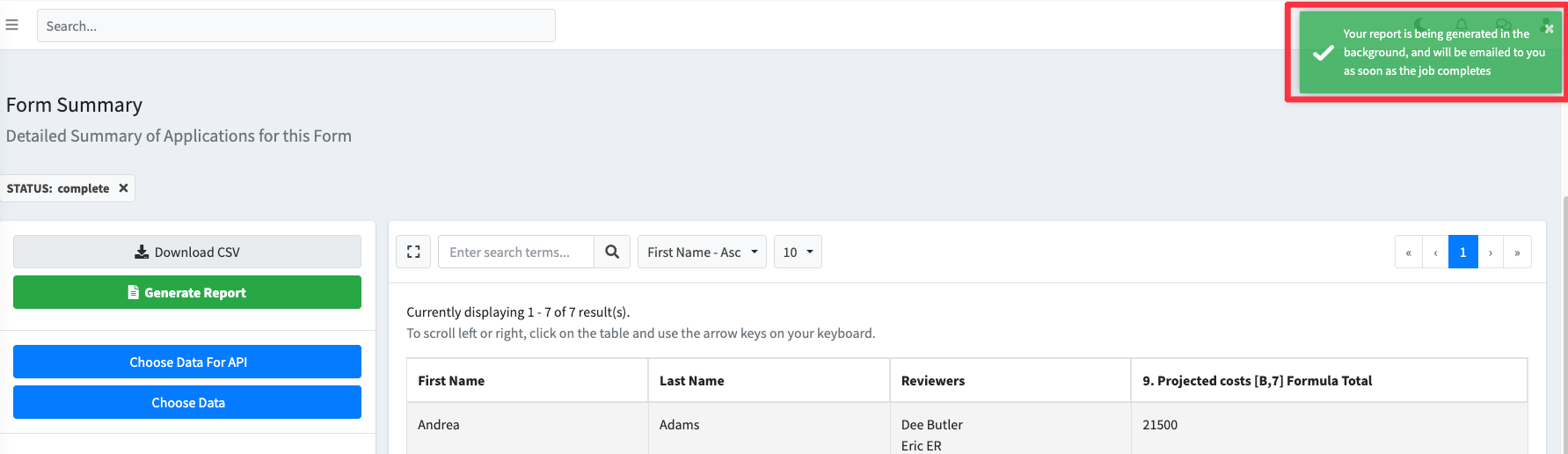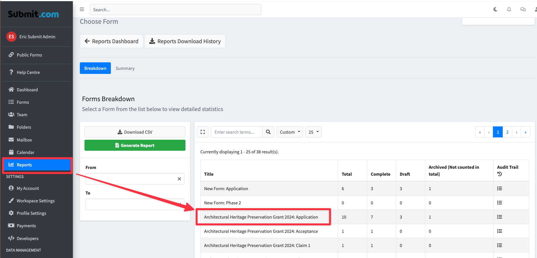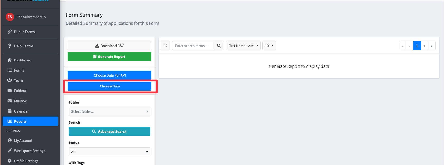 - Choose the form you wish to generate a report for.