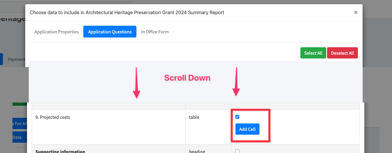 - Scroll to find the table from which you want to pull information.
