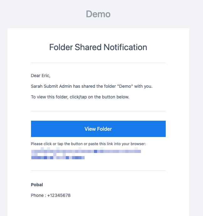 Once a folder is shared, the external reviewer or team member will receive a notification alerting them that they have been added to a folder.