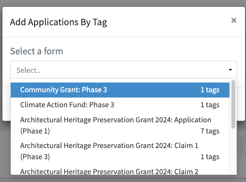 Once you have selected which application you are adding, another dialog box opens up where you can select the appropriate tags