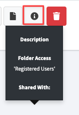 - The information button shows any relevant information about the folder. Who made the folder, who has access, and with whom it is shared.
