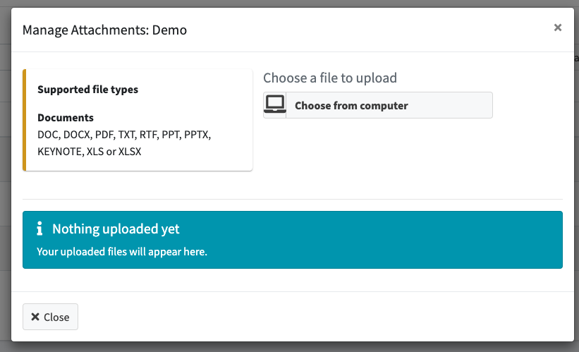 - The Attachments button opens up the Attachments dialog box where attachments can be added to the folder. Example: scoring guides