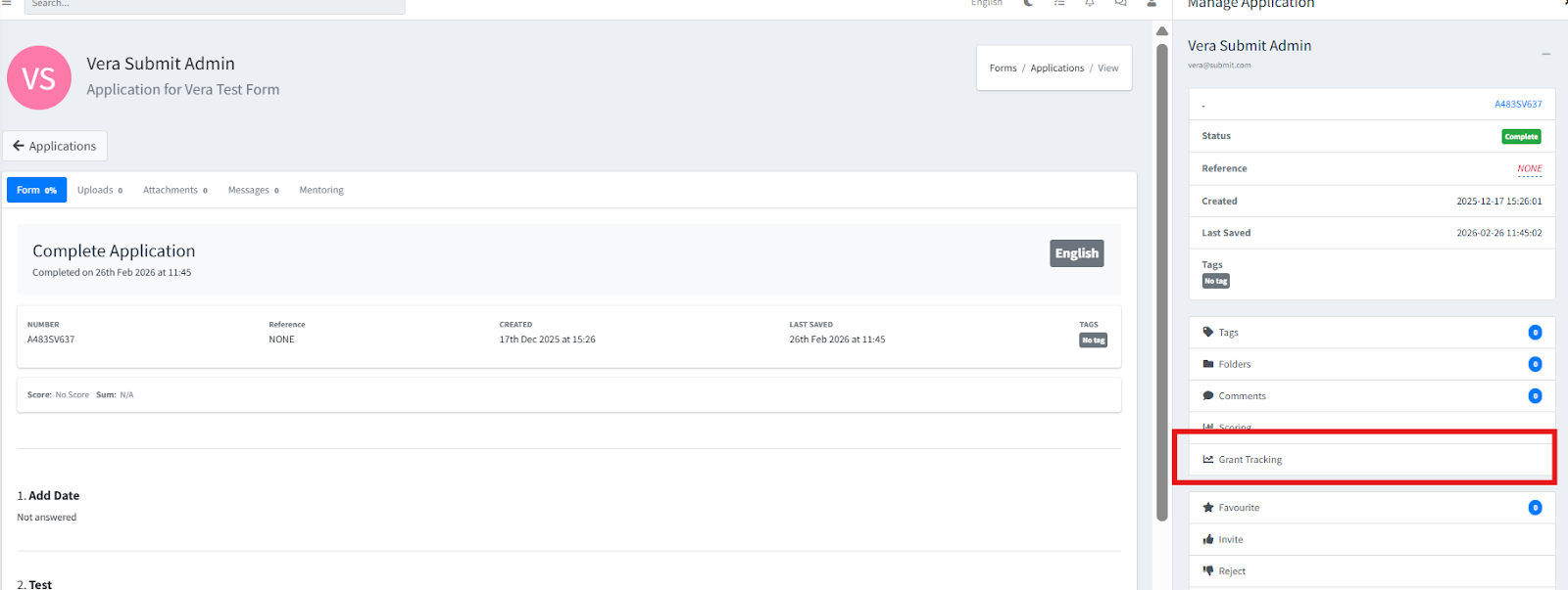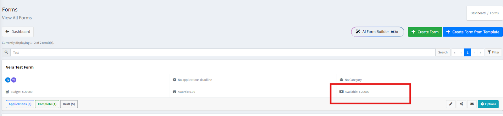 If you go back to view the Form in the Form list, you will see that the Grant amount will show: