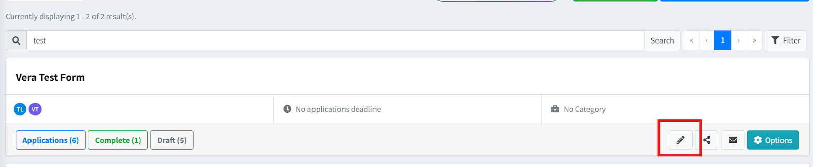 To enable Grant Tracking on a Form, navigate to the Form in question and click on the pencil icon to edit the form: